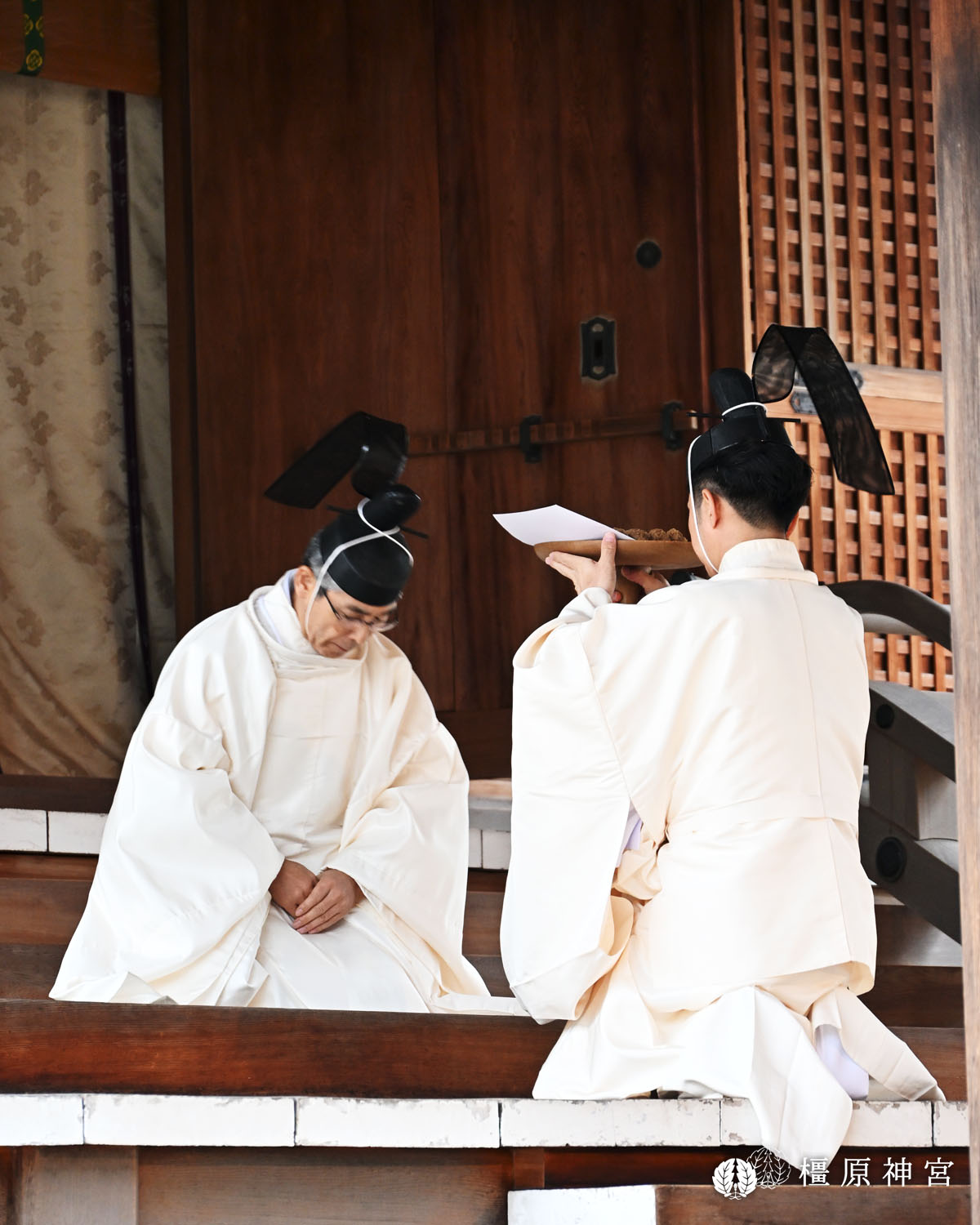 神々に祈り、願い、そして神々を楽しませるため捧げられる歌舞は、現在も宮中や全国の神社で受け継がれ、橿原神宮においても毎月の月次祭をはじめ、年間60以上執り行われる恒例祭典にて、歌舞が奉奏されます。
