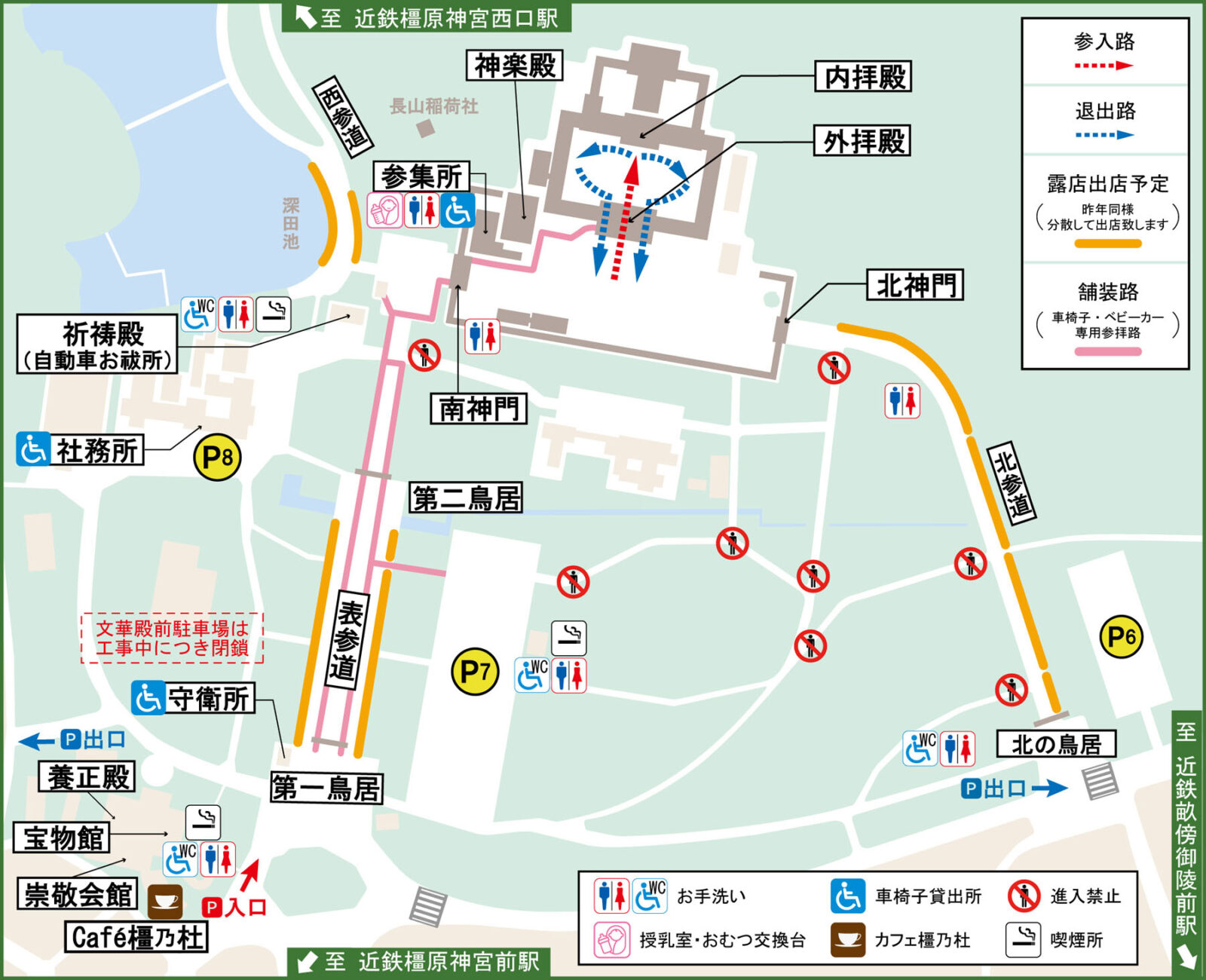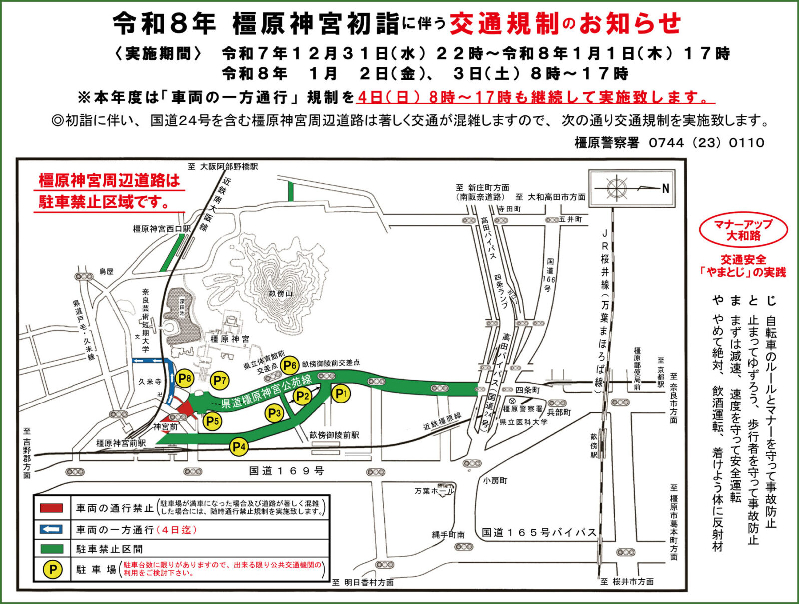 橿原神宮周辺道路は、以下の通り交通規制が実施されます。