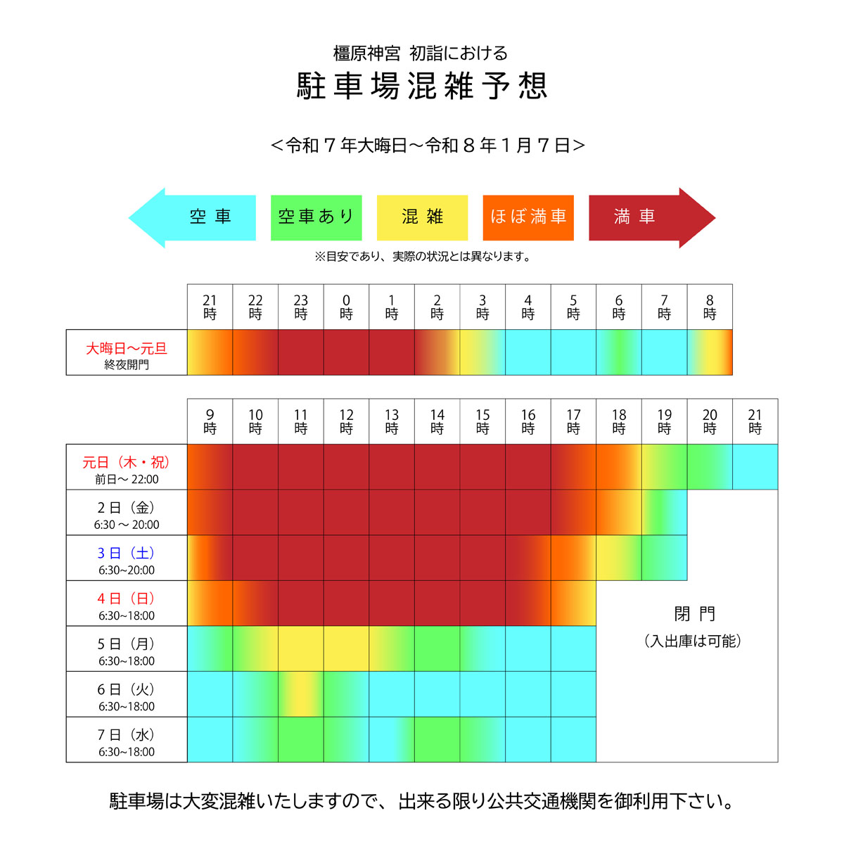 また、当日の駐車状況は各種SNSにて公開しておりますので御確認下さい。