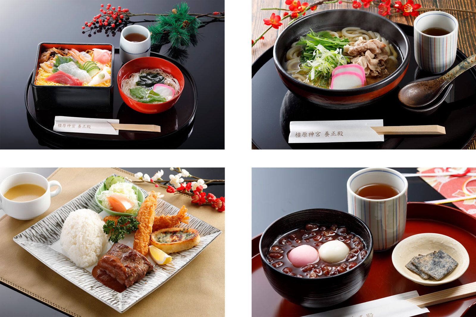 橿原神宮境内にある、Café 橿乃杜では、ぜんざいや温かいうどん・数量限定のちらし寿司などお正月限定のメニューを御用意しております。