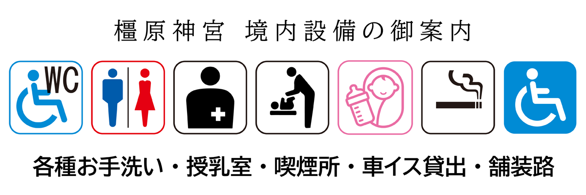 橿原神宮では、皆様が安心して快適に御参拝していただけるよう、様々な設備を整備しております。